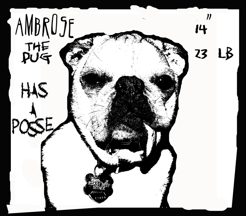 Hit the streets in the pinnacle of fashion with this t-shirt that is a spin on an iconic sticker you've probably seen before, and let everyone know that 'Ambrose the pug has a posse'.